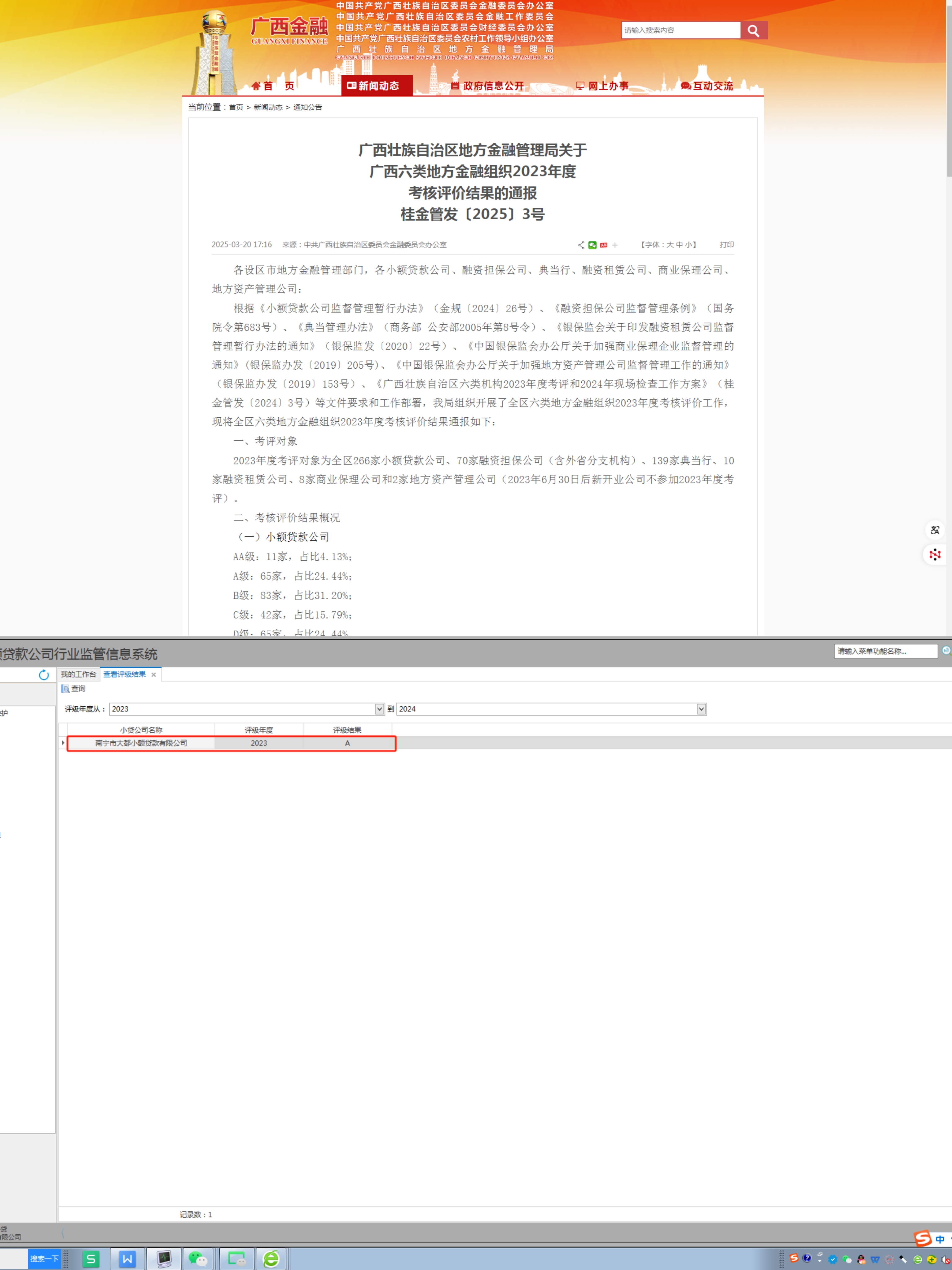 近日,自治区地方金融管理局公布了2023年度广西小额贷款公司考核评价结果,南宁市大都小额贷款有限公司获评A级监管评级小贷公司。