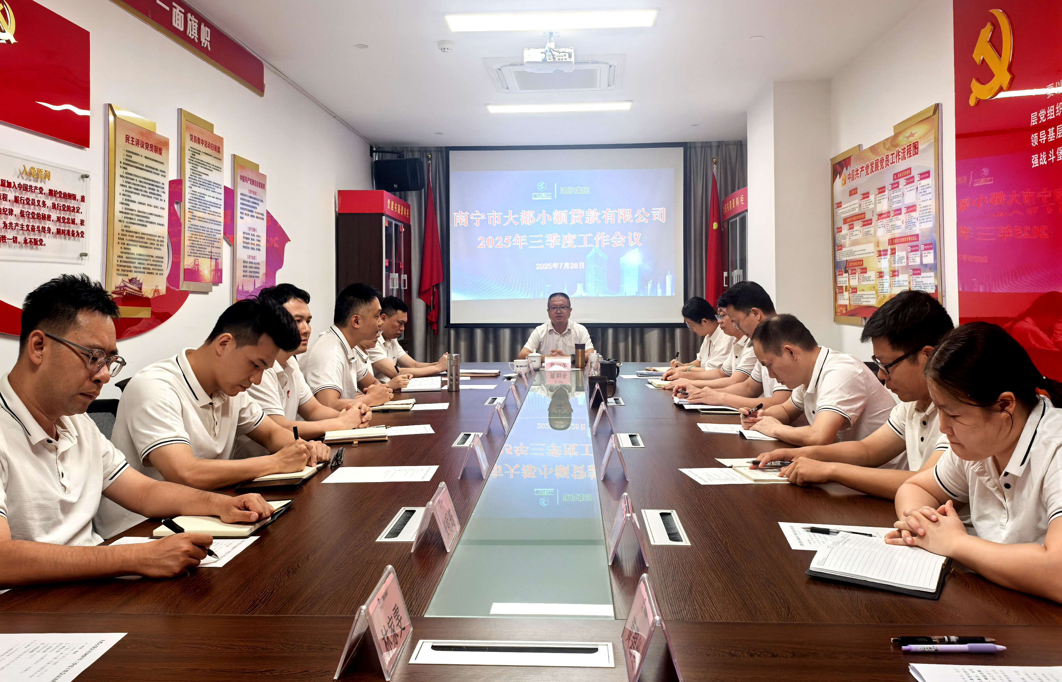 7月28日,南宁市大都小额贷款有限公司三季度工作会议在建工大厦10楼召开。广西建工建设投资集团有限公司总经理、党委副书记莫如冬出席并讲话,公司总经理、党支部书记邓园园、副总经理卢名川参加。